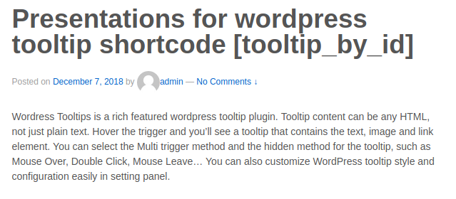 Presentations for wordpress tooltip shortcode [tooltip_by_id]